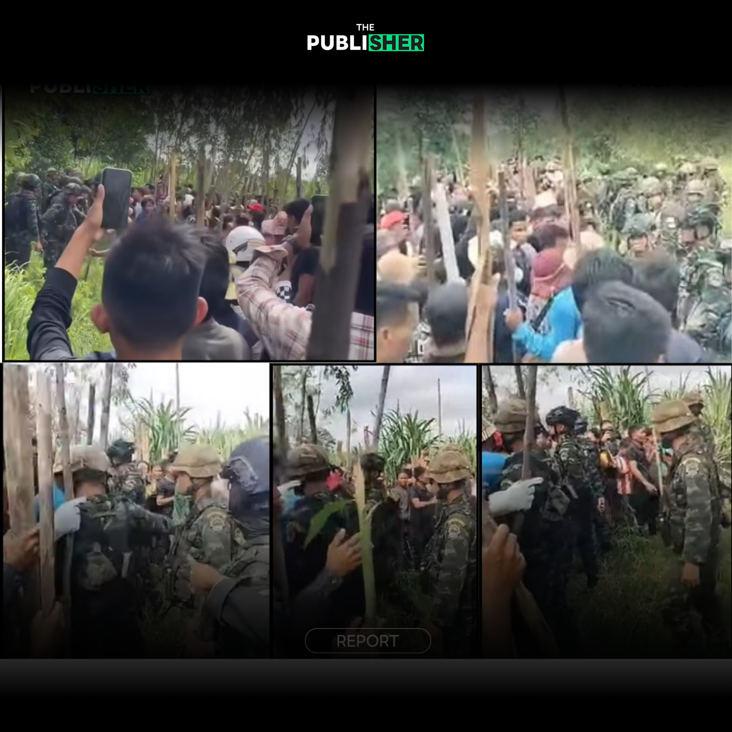 ในภาพจะเห็นว่าทหารเขมรนำชาวบ้านพร้อมด้วยท่อนไม้ครบมือประท้วงคัดค้านการสร้างรั้วกั้นประเทศ และกดดันขับไล่เจ้าหน้าที่ทหารไทยที่ประจำการอยู่บนดินแดนของไทย จากนั้นผู้นำชุมชนร่วมกับทหารเขมรเกณฑ์ชาวบ้านใกล้เคียง มายังพื้นที่อย่างต่อเนื่อง ขณะที่ทหารไทยไม่ได้ติดอาวุธและเข้าไปเจรจาให้ออกจากพื้นที่เท่านั้น
