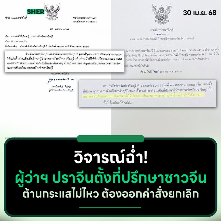 เป็นกรณีร้อนหลังจากเพจ CSI LA โพสต์ภาพคำสั่งของนายวีระพันธ์ ดีอ่อน ผู้ว่าราชการจังหวัดปราจีนบุรี ที่ตั้งแต่ชายชาวจีนชื่อ Mr. Juncheng เป็น “ที่ปรึกษาผู้ว่าราชการจังหวัด” อย่างเป็นทางการ ท่ามกลางเสียงวิพากษ์วิจารณ์อย่างหนักถึงคำสั่งดังกล่าว ว่าทำไมถึงตั้งคนจีนใกล้กับผู้ว่าฯ ใครเป็นผู้ผลักดันการแต่งตั้ง และตำแหน่งนี้มีอิทธิพลหรืออำนาจหน้าที่ในการขับเคลื่อนงานของจังหวัดอย่างไร มีผลประโยชน์แอบแฝงหรือไม่ รวมถึงนี่เป็นการตอกย้ำอิทธิพลของคนจีนที่เข้าไปอยู่ใจกลางอำนาจปกครองส่วนภูมิภาค โดยเฉพาะในพื้นที่ภาคตะวันออกหรือไม่