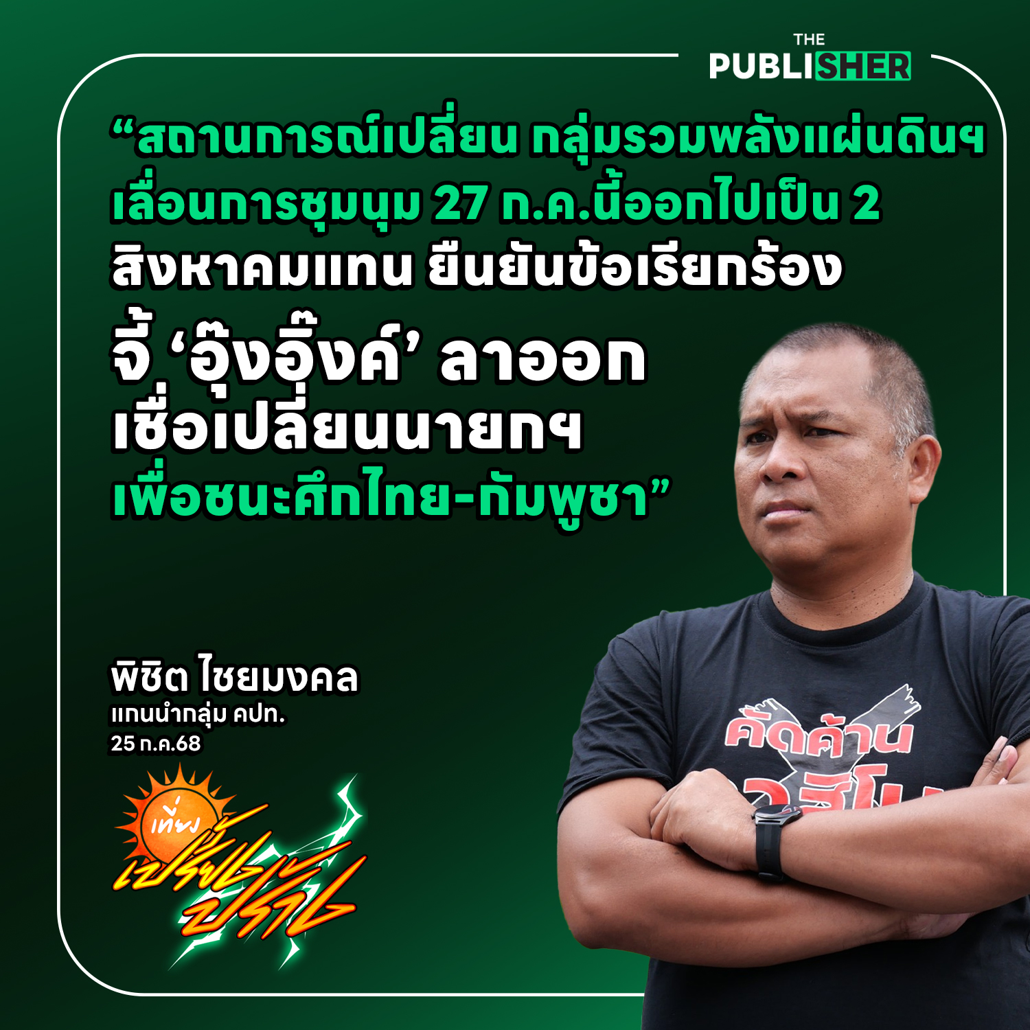นายพิชิต ไชยมงคล แกนนำกลุ่มเครือข่ายนักศึกษาประชาชนเพื่อปฏิรูปประเทศไทย หรือ คปท.เปิดเผยเรื่องนี้ระหว่างให้สัมภาษณ์คุณสมจิตต์ นวเครือสุนทร ในรายการเที่ยงเปรี้ยงปร้างของสำนักข่าว The Publisher โดยบอกจากเดิมที่นัดชุมนุมใหญ่ที่อนุสาวรีย์ชัยสมรภูมิวันที่ 27 กรกฎาคมนี้ แต่ปรากฎว่าสถานการณ์เปลี่ยนแปลง จำเป็นต้องเลื่อนการชุมนุมออกไปอีก 1 สัปดาห์เป็นวันที่ 2 สิงหาคมนี้แทน โดยจุดยืนเช่นเดิมคือเรียกร้องให้นางสาวแพทองธาร ชินวัตร ลาออก เพื่อให้ได้นายกฯ คนใหม่มากำกับดูแลบ้านเมือง และปัญหาข้อพิพาทชายแดนไทย-กัมพูชา เพราะนายกฯ และพ่อนายกฯ เป็นจุดอ่อนในการสู้รบกับกัมพูชา