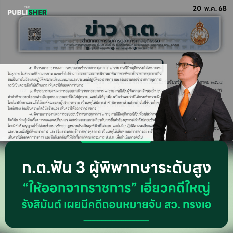 เป็นผลจากการประชุมคณะกรรมการตุลาการศาลยุติธรรม ครั้งที่ 13/2568 ปรากฎว่ามีมติสำหรับในเรื่องเกี่ยวกับการพิจารณาผลการสอบสวนข้าราชการตุลาการ 3 ราย และมีมติให้ออกจากราชการ และส่ง ป.ป.ช.ดำเนินการต่อไป