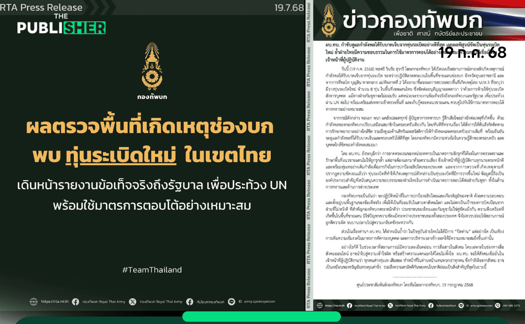#ThePublisherTH#สำนักข่าวออนไลน์เพื่อสังคม#วางกับระเบิดของกัมพูชาในเขตแผ่นดินไทย#วางกับระเบิด#กองทัพบก#รัฐบาลแพทองธาร#กองทัพภาค2#ชายแดนไทยกัมพูชา#ผบทบ#สนธิสัญญาออตตาวา