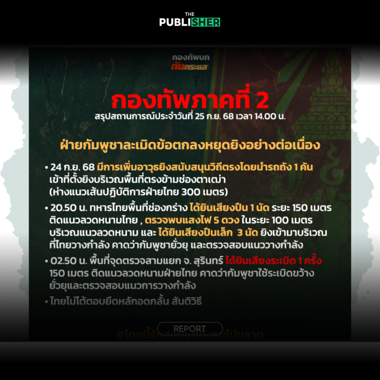 #ThePublisherTH#สำนักข่าวออนไลน์เพื่อสังคม#ไทยนี้รักสงบแต่ถึงรบไม่ขลาด#TruthFromThailand#รุกล้ำอธิปไตย#บ้านหนองจาน#บ้านหนองหญ้าแก้ว#อันธพาลชายแดน#กองทัพภาคที่2#รัฐบาลอนุทิน#พื้นที่อ้างสิทธิ#รุกล้ำอธิปไตยไทย#ปิดด่าน#กัมพูชาภัยคุกคาม#ปกป้องชายแดน