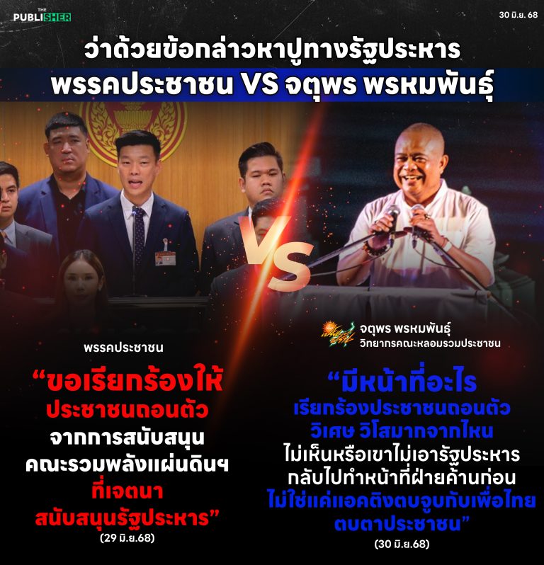 #ThePublisherTH#สำนักข่าวออนไลน์เพื่อสังคม#รวมพลังแผ่นดินปกป้องอธิปไตย#พรรคประชาชน#หยุดปฏิบัติหน้าที่#ลาออก#ยุบสภา#รัฐบาลแพทองธาร#จตุพรพรหมพันธุ์#ไม่เอารัฐประหาร#ศาลรัฐธรรมนูญ#พรรคเพื่อไทย