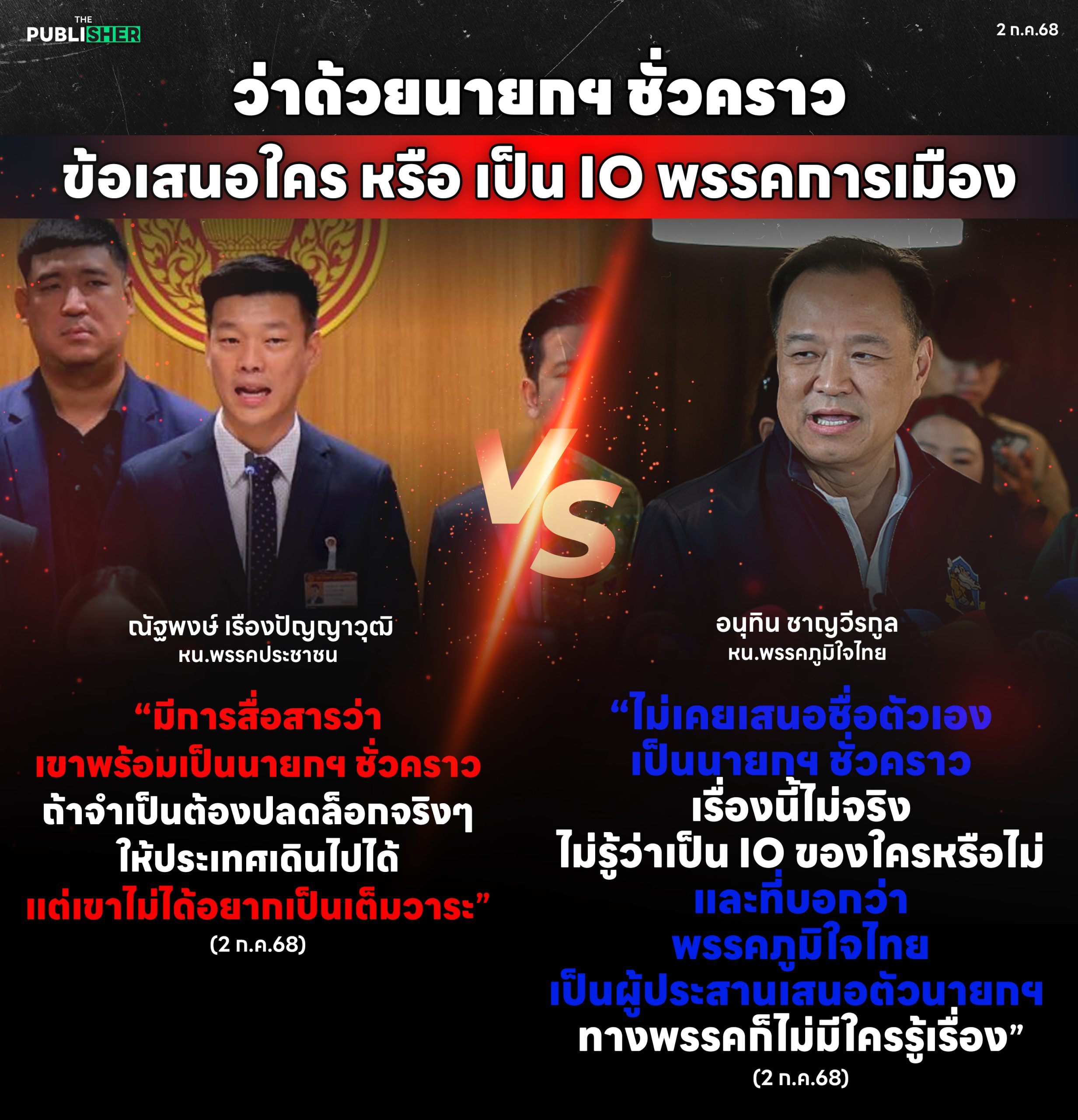 #ThePublisherTH#สำนักข่าวออนไลน์เพื่อสังคม#พรรคประชาชน#รัฐบาลแพทองธาร#ลาออก#นายกฯชั่วคราว#อนุทินชาญวีรกูล#นิติสงคราม#ทางออกการเมืองไทย#การเมืองไทย#ยุบสภา#นายกฯมาตรา5