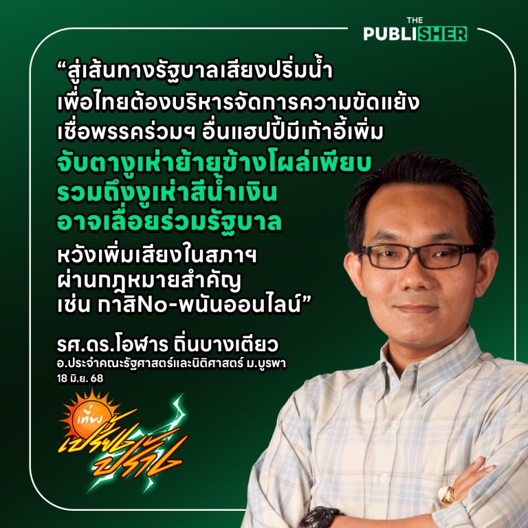 “สู่เส้นทางรัฐบาลเสียงปริ่มน้ำ เพื่อไทยต้องบริหารจัดการความขัดแย้ง เชื่อพรรคร่วมฯ อื่นแฮปปี้มีเก้าอี้เพิ่ม จับตางูเห่าย้ายข้างโผล่เพียบ รวมถึงงูเห่าสีน้ำเงินอาจเลื่อยร่วมรัฐบาล หวังเพิ่มเสียงในสภาฯ ผ่านกฎหมายสำคัญเช่น กาสิNo-พนันออนไลน์” รศ.ดร.โอฬาร ถิ่นบางเตียว อ.ประจำคณะรัฐศาสตร์และนิติศาสตร์ ม.บูรพา