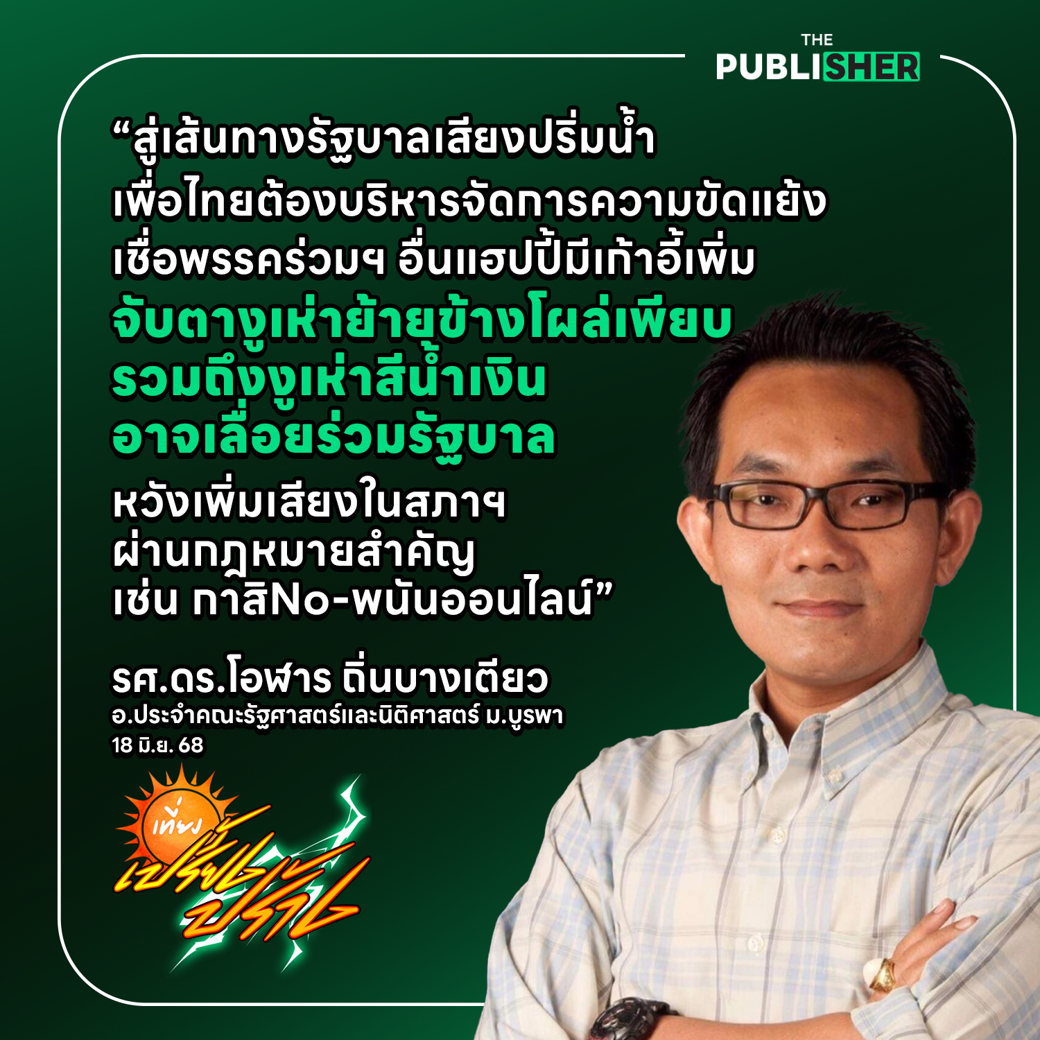 ฟังต่อในรายการเที่ยงเปรี้ยงปร้าง พร้อมวิเคราะห์เจาะลึกปมข้อพิพาทไทย-กัมพูชา #ThePublisherTH#สำนักข่าวออนไลน์เพื่อสังคม#เที่ยงเปรี้ยงปร้าง#รัฐบาลแพทองธาร#ฮุนเซน#แพทองธาร#แพทองธารชินวัตร#ทักษิณ#ทักษิณชินวัตร#ไทยกัมพูชา#ชายแดนไทยกัมพูชา#ปรับครม#ภูมิใจไทย#รัฐบาลเสียงปริ่มน้ำ