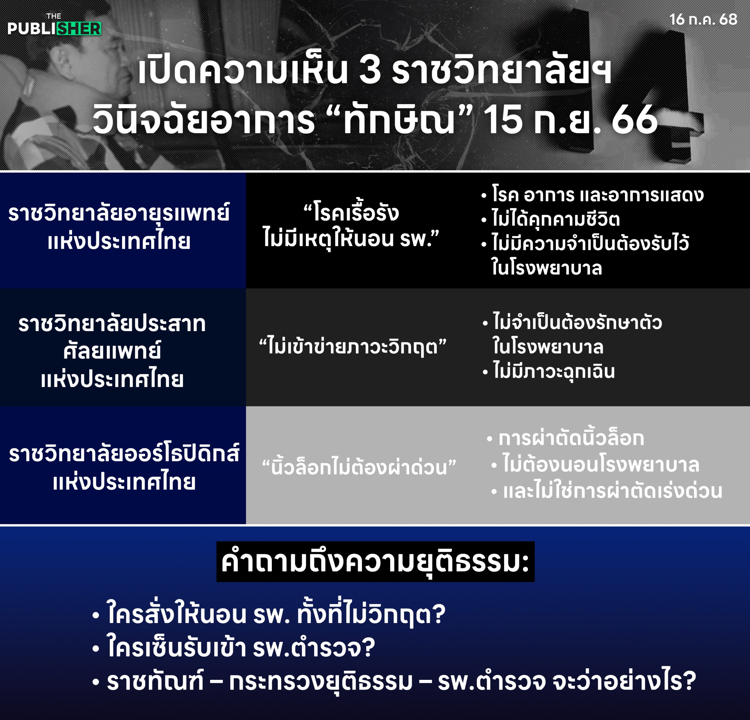 เปิดความเห็น 3 ราชวิทยาลัยฯ “ทักษิณ” ไม่ป่วยวิกฤต