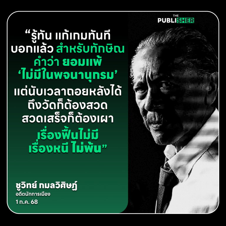 “เช้ามาก็หยุดตำแหน่งนายกฯ อยู่ต่อ รมว.วัฒนธรรม รู้ทัน แก้เกมทันที บอกแล้ว สำหรับทักษิณคำว่ายอมแพ้ไม่มีในพจนานุกรม แต่นับเวลาถอยหลังได้ ถึงวัดก็ต้องสวด สวดเสร็จก็ต้องเผา เรื่องฟื้นไม่มี เรื่องหนีไม่พ้น” นายชูวิทย์ระบุ