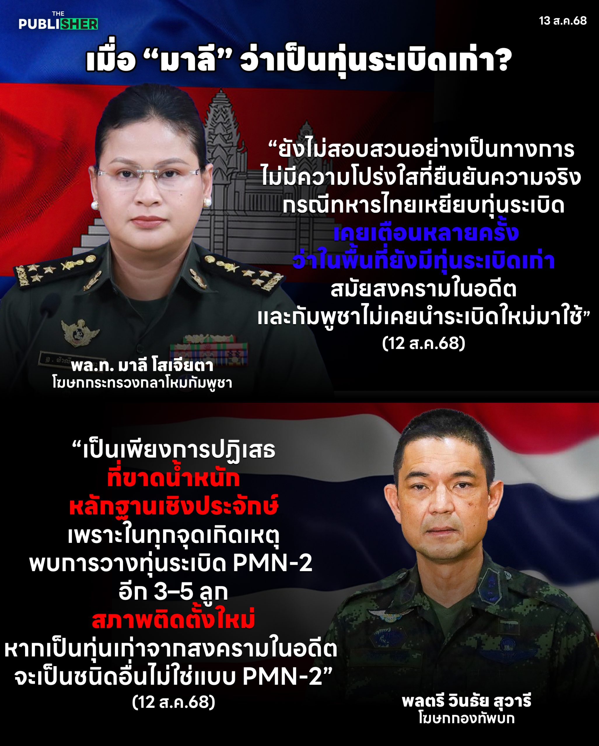 #ThePublisherTH #สำนักข่าวออนไลน์เพื่อสังคม #StopHunManet #WarCrimes #HumanRights #Scambodia #ฮุนเซนอาชญากรสงคราม #hunsenwarcriminal #กัมพูชายิงก่อน #CambodiaOpenedFire #ไทยนี้รักสงบแต่ถึงรบไม่ขลาด #TruthFromThailand #ทุ่นระเบิดผิดสนธิสัญญา #อนุสัญญาออตตาวา