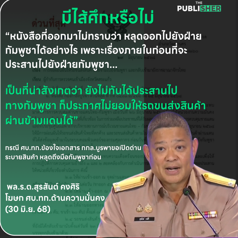 #ThePublisherTH#สำนักข่าวออนไลน์เพื่อสังคม#แพทองธารชินวัตร#รัฐบาลแพทองธาร#ชายแดนไทยกัมพูชา#ฮุนเซน#ปิดด่านไทยกัมพูชา#กองกำลังบูรพา#ฮุนมาเนต#กองทัพบก#ศบทก