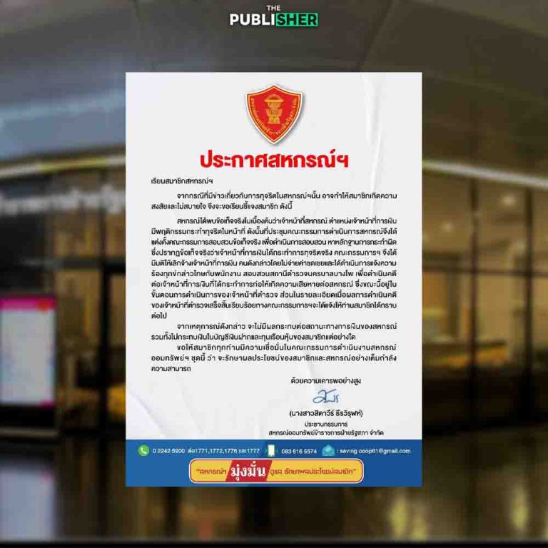 ทั้งนี้สหกรณ์ดังกล่าวดำเนินการมาเกือบ 50 ปี เติบโตต่อเนื่อง มีสินทรัพย์กว่า 2 พัน 5 ร้อยล้านบาท เพิ่มจากปีก่อน 200 ล้านบาท กำไรกว่าร้อยล้านบาท ทำให้สหกรณ์มีความมั่นคงทางการเงิน และให้ผลตอบแทนการลงทุนกับสมาชิกมาตลอด