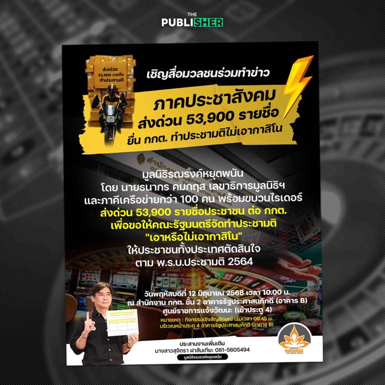 มูลนิธิรณรงค์หยุดพนัน โดย “นายธนากร คมกฤส” เลขาธิการมูลนิธิฯ และภาคีเครือข่าย กว่า 100 คน พร้อมขบวนไรเดอร์ เชิญสื่อมวลชนและประชาชนร่วมจับตา กิจกรรมส่งด่วน 53,900 รายชื่อประชาชน ต่อ กกต.” เพื่อขอให้คณะรัฐมนตรีจัดทำประชามติ “เอาหรือไม่เอากาสิโน” ให้ประชาชนทั้งประเทศตัดสินใจ ตาม พ.ร.บ.ประชามติ 2564 โดยหัวข้อประชามติคือ “ประชาชนเห็นด้วยหรือไม่กับการเพิ่มแหล่งพนันในสังคมโดยนโยบายรัฐบาล”