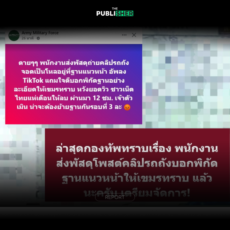 ส่วนกรณีเพจ Army Military Force ระบุ ล่าสุดกองทัพทราบเรื่อง พนักงานส่งพัสดุโพสต์คลิปรถถังบอกพิกัดฐานแนวหน้าให้เขมรทราบ แล้วนะครับ เตรียมจัดการ!