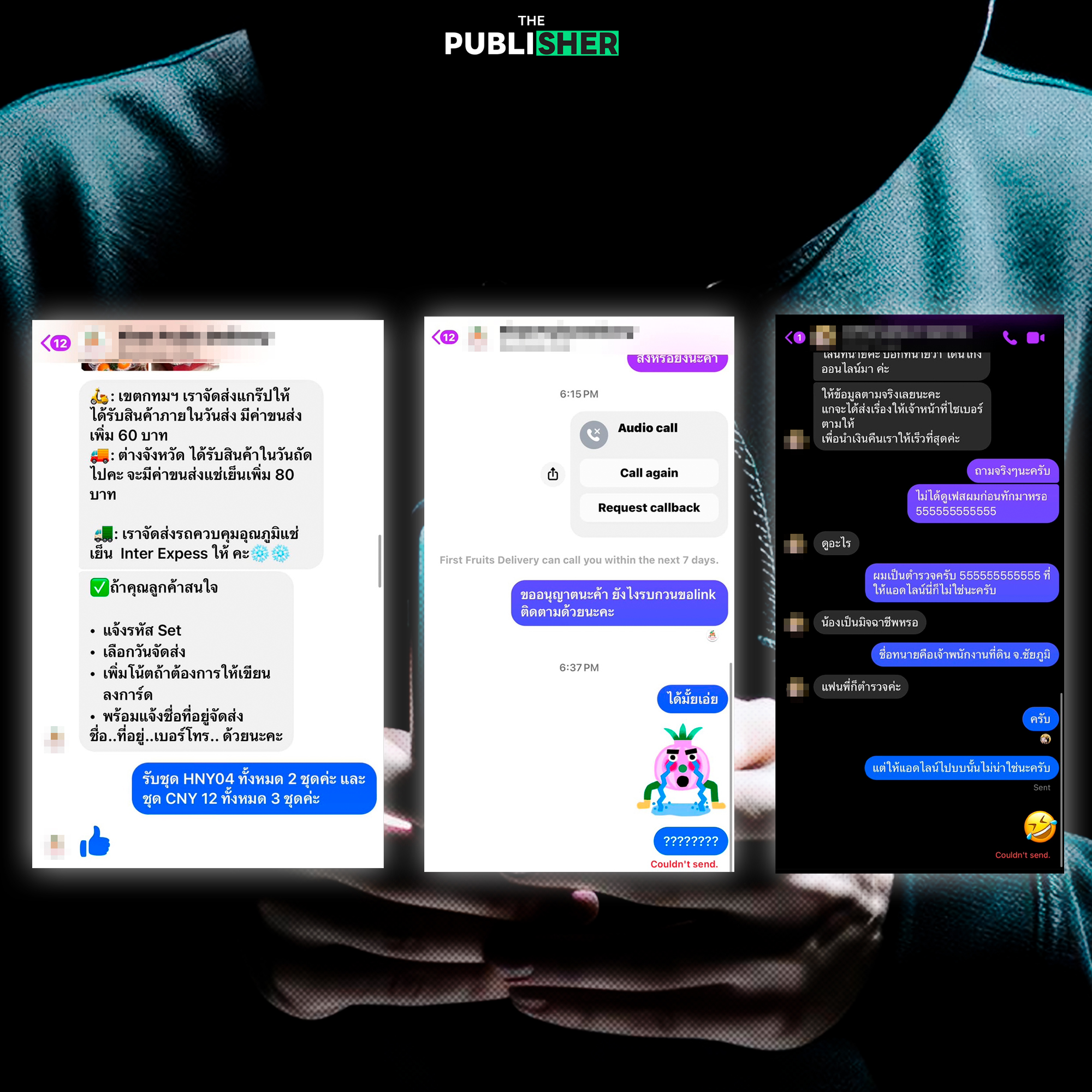 ผู้ใช้เฟซบุ๊ค Anucha Ton เปิดเผยว่าตนได้สั่งผลไม้สดจากร้านจัดเซตผลไม้แห่งหนึ่งผ่านช่องทางออนไลน์ มูลค่า 3,300 บาท สอบถามกับเหยื่อแจ้งว่าเหตุที่ตัดสินใจซื้อร้านนี้ เนื่องจากร้านผลไม้ที่ว่านั้น ดูน่าเชื่อถือ มีการถามตอบรวดเร็ว ข้อความสั่งสินค้ามีความเป็นมืออาชีพ นัดวันส่งของชัดเจน รูปลักษณ์สวยงาม เหยื่อจึงได้ตัดสินใจซื้อ ปรากฎว่าหลังจากที่โอนไปแล้วไม่สามารถติดตามการส่งสินค้าต่อได้ โทรไปไม่รับ ทักไปไม่ตอบ เหมือนจงใจหายไป