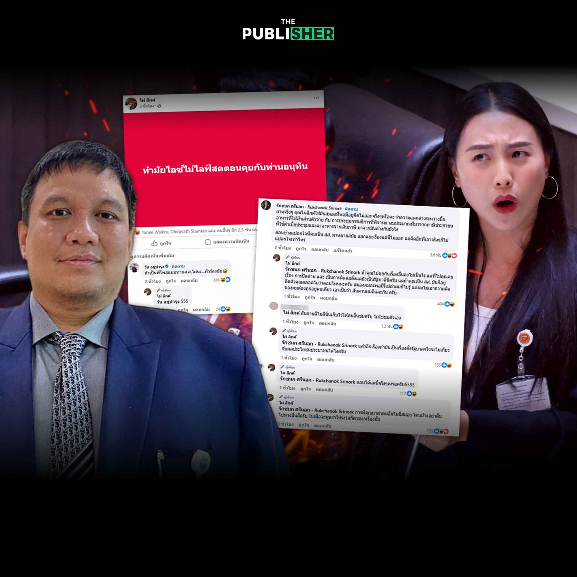 ศึกกลางเฟซบุ๊กระหว่าง ส.ส. ต่างขั้ว ไอซ์–รักชนก ศรีนอก พรรคประชาชน และ ไผ่ ลิกค์ เลขาธิการพรรคกล้าธรรม ปะทะคารมเดือด หลังไผ่โพสต์ถามเชิงแซะ “ทำไมไอซ์ไม่ไลฟ์สดตอนคุยกับท่านอนุทิน” ก่อนลามเป็นมหากาพย์วิวาทะแบบไม่มีกั๊ก