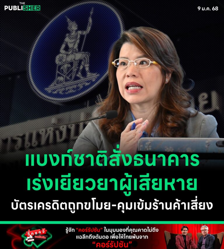 โดยกำหนดให้ผู้ถือบัตรเครดิตไม่ต้องรับผิดชอบต่อยอดใช้จ่ายและดอกเบี้ยที่เกิดขึ้นจากการทุจริต ส่วนกรณีบัตรเดบิต ธนาคารจะคืนเงินให้ผู้ถือบัตรเต็มจำนวนภายใน 5 วัน นับจากวันที่ตรวจสอบพบว่าผู้ถือบัตรไม่ได้มีส่วนเกี่ยวข้องกับธุรกรรมที่ผิดปกติ พร้อมย้ำให้ธนาคารพาณิชย์และผู้ให้บริการบัตรเครดิตปฏิบัติตามแนวทางดังกล่าวอย่างเคร่งครัด