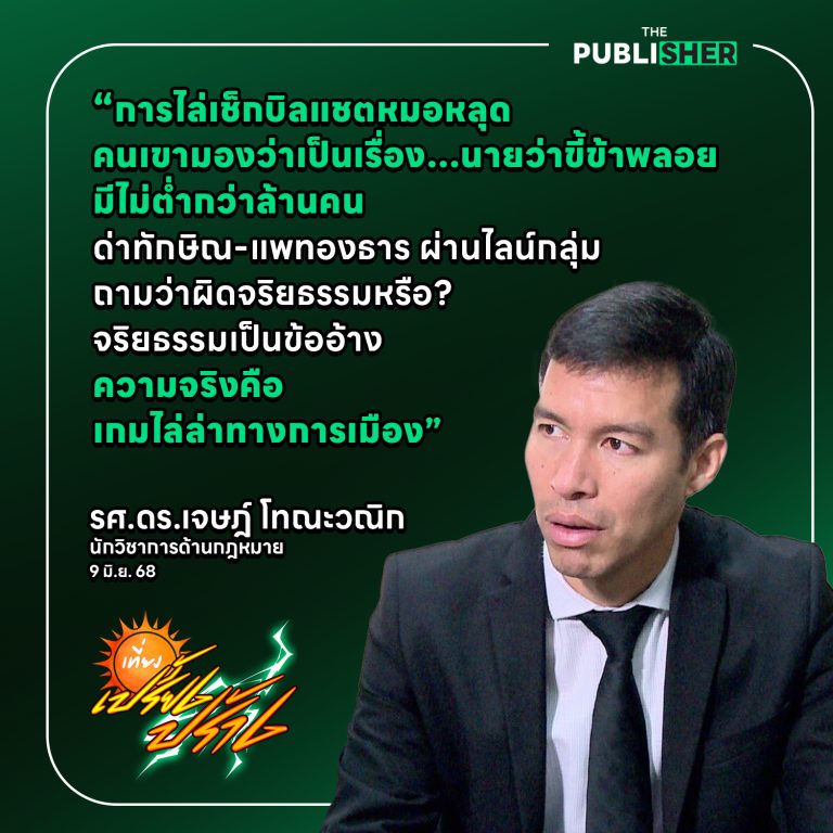 “ไล่เช็กบิลไลน์หมอหลุด ผิดจริยธรรมจริงหรือ? หรือเป็นเรื่องนายว่าขี้ข้าพลอย? มันไม่ใช่จริยธรรมแต่เป็นการไล่ล่าทางการเมือง“—รศ.ดร.เจษฎ์ โทณะวณิก นักวิชาการด้านกฎหมาย