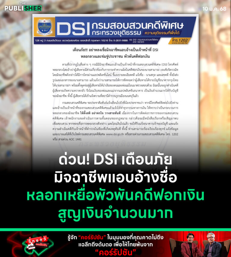 ThePublisherTH #สำนักข่าวออนไลน์เพื่อสังคม #DSI #มิจฉาชีพ #ฟอกเงิน #แอบอ้าง