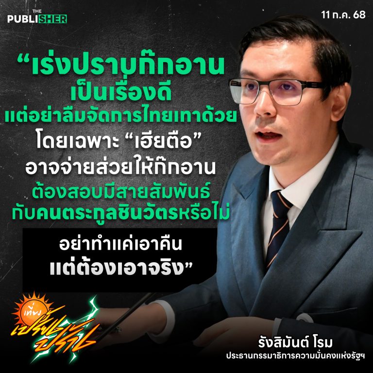 #ThePublisherTH #สำนักข่าวออนไลน์เพื่อสังคม #เที่ยงเปรี้ยงปร้าง #รัฐบาลแพทองธาร #ทักษิณชินวัตร #ก๊กอาน #ไทยเทา #แก็งคอลเซนเตอร์ #ความมั่นคง #ค้ามนุษย์ #ชายแดนไทยกัมพูชา