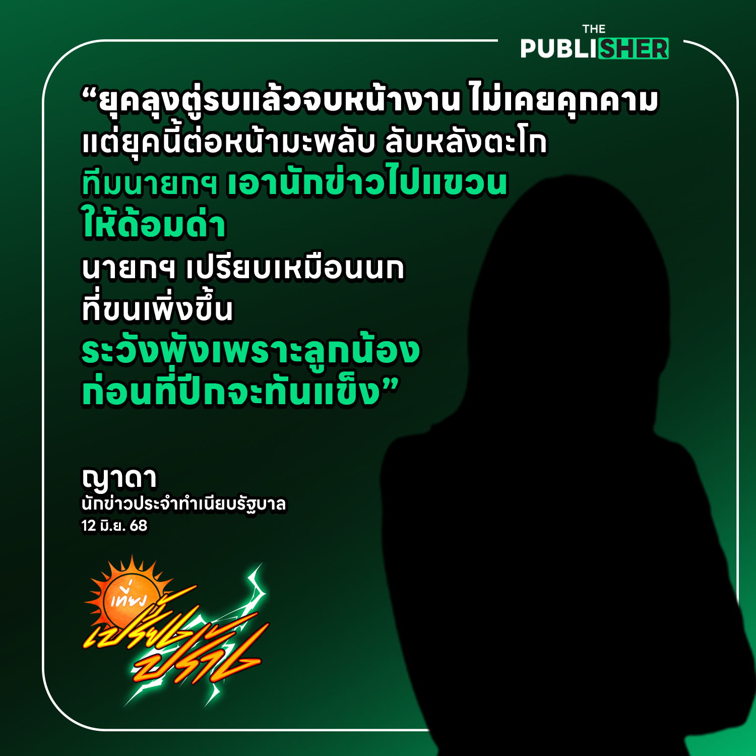 #ThePublisherTH #สำนักข่าวออนไลน์เพื่อสังคม #แพทองธาร #แพทองธารชินวัตร #ทักษิณชินวัตร #รัฐบาลแพทองธาร #รัฐบาล #ครม #คุกคามสื่อ #สมาคมนักข่าว #หยุดคุกคามสื่อ #เสรีภาพไม่ใช่ศัตรูของรัฐ #อย่าคุกคามสื่อ #คำถามไม่ใช่อาชญากรรม #เที่ยงเปรี้ยงปร้าง