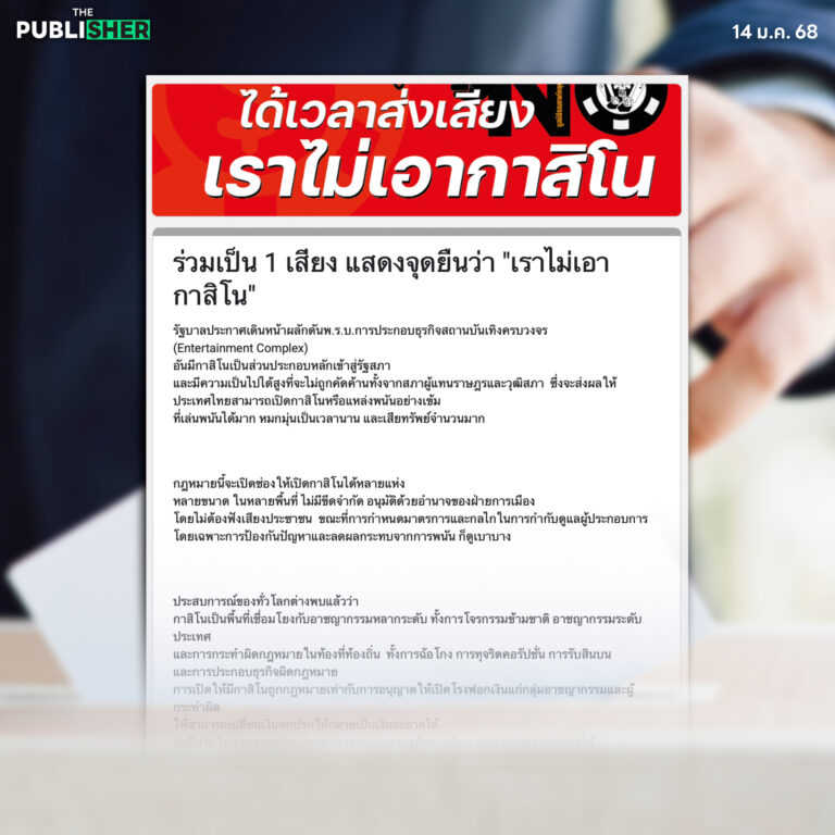 #ThePublisher #trendy EntertainmentComple กาสิโน กาสิโนถูกกฎหมาย ทุจริตคอร์รัปชัน สำนักข่าวออนไลน์เพื่อสังคม