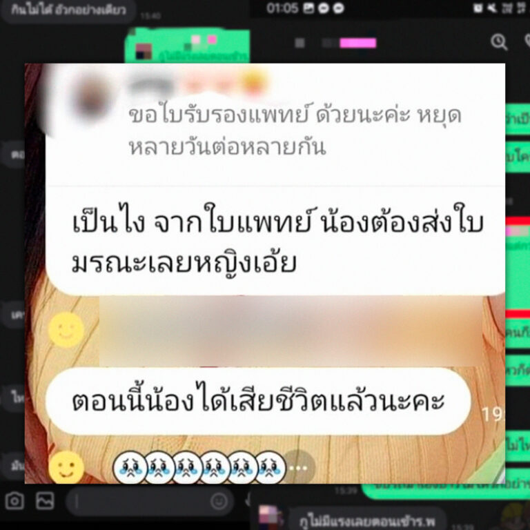 ทั้งนี้ มีข้อมูลเพิ่มเติมว่า เคยลาไปพบหมอแล้วรอบแรก ซึ่งลาได้ปกติพร้อมแนบใบรับรองแพทย์ แต่ปัญหาอยู่ที่การลารอบที่ 2 ในวันที่ 12 กันยายน เพราะอาการไม่ดีขึ้น แต่หัวหน้าไม่ให้ลา ต้องทำงานทั้งที่ไม่สบาย หลังเลิกงานจึงไปพบหมออีกครั้ง และไม่ได้ตอบไลน์ที่หัวหน้าถามเรื่องใบรับรองแพทย์ จนมีเพื่อนในกลุ่มมาตอบแทนว่า ลูกน้องคนนี้เสียชีวิตแล้ว ทำเอาหลายคนไม่พอใจ เพราะหากหัวหน้าให้ลางานไปพบหมอก่อน อาจไม่เสียชีวิต