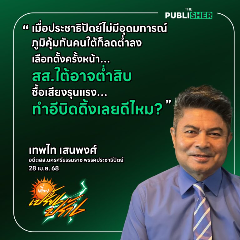 “คนภาคใต้ชอบการเมืองที่มีอุดมการณ์ เมื่อไม่ทำตามสัญญา ไม่ยืนหยัดต่อสู้ระบอบสืบทอดอำนาจ เหมือนที่อภิสิทธิ์ เวชชาชีวะเคยประกาศไว้ ประชาธิปัตย์ก็หมดจุดขายไปแล้ว” เทพไทย้ำ