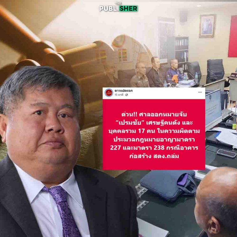 เพจ “ดาวแปดแฉก” โพสต์เรื่องนี้โดยระบุ ด่วน ! ศาลออกหมายจับ “เปรมชัย” เศรษฐีคนดัง และบุคคลรวม 17 คน ในความผิดตามประมวลกฎหมายอาญามาตรา 227 และมาตรา 238 กรณีอาคารก่อสร้าง สตง.ถล่ม