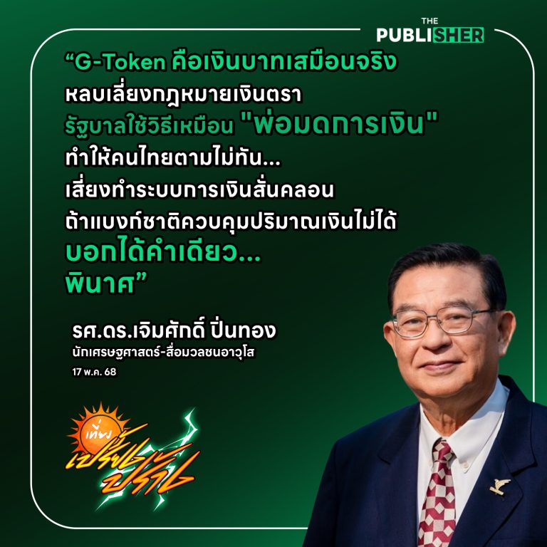 รศ.ดร.เจิมศักดิ์ ปิ่นทอง นักเศรษฐศาสตร์และสื่อมวลชนอาวุโส ใช้ถ้อยคำรุนแรงที่สุดเท่าที่เคยพูดมาในรายการ เที่ยงเปรี้ยงปร้าง เพื่อเตือนถึงสิ่งที่เขามองว่าเป็น “มหันตภัยทางการคลัง” ที่มากับสิ่งชื่อว่า G-Token—เหรียญดิจิทัลที่รัฐบาลเตรียมออกวงเงิน 5,000 ล้านบาท เพื่อกู้ประชาชนมาชดเชยงบขาดดุลปี 2568