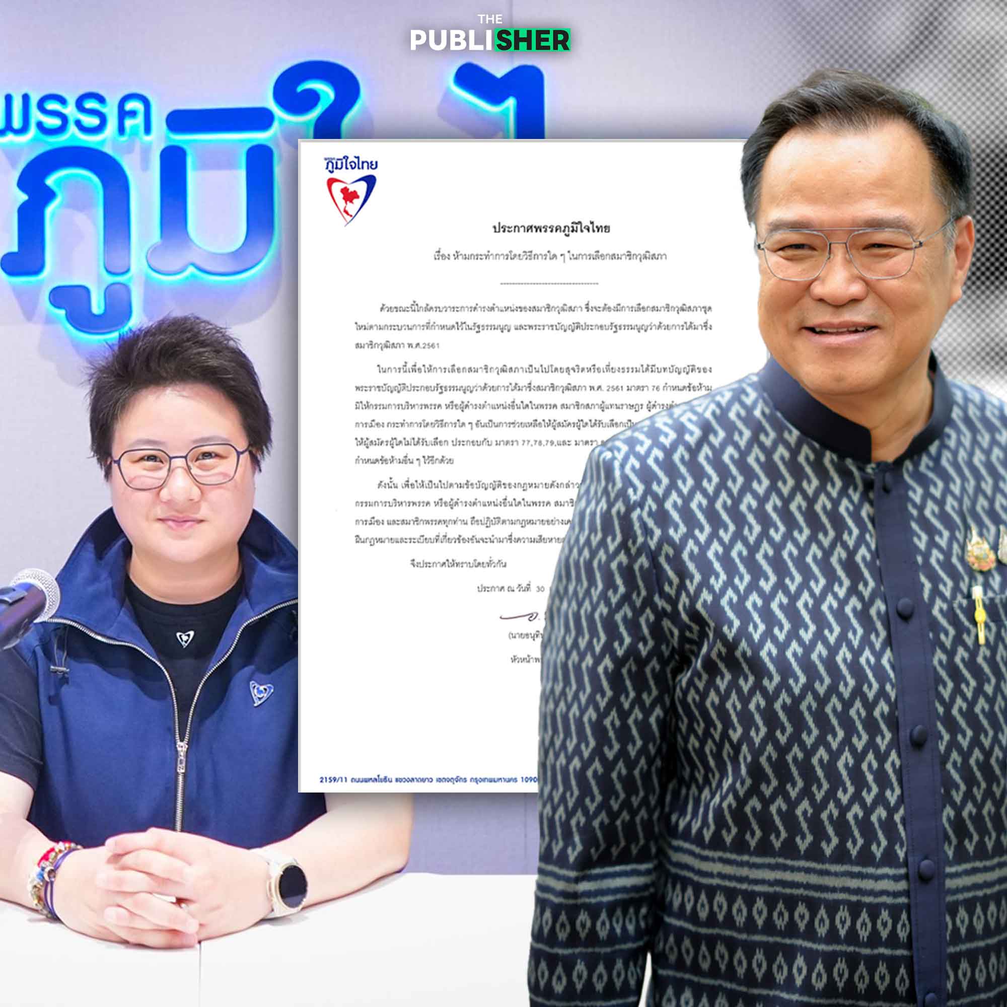 นายอนุทินประกาศด้วยว่า หากใครพาดพิงทำให้พรรคเสียหาย เตรียมใช้สิทธิทางกฎหมายจัดการ ทั้งหมิ่นประมาท แจ้งความเท็จ และละเมิด เพราะต้องปกป้องศักดิ์ศรีพรรคที่มี สส.ถึง 70 คนและคะแนนจากประชาชนกว่าล้านเสียง