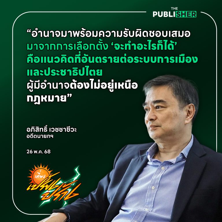 You are at:Home»“อำนาจมาพร้อมความรับผิดชอบเสมอ แนวคิดมาจากการเลือกตั้งทำได้ทุกอย่างอันตรายต่อทั้งระบบการเมืองและประชาธิปไตย” อภิสิทธิ์ เวชชาชีวะ กับคำพิพากษาคดีจำนำข้าว–บทบาทผู้นำ–และขีดจำกัดของการคุ้มครองทางการเมือง