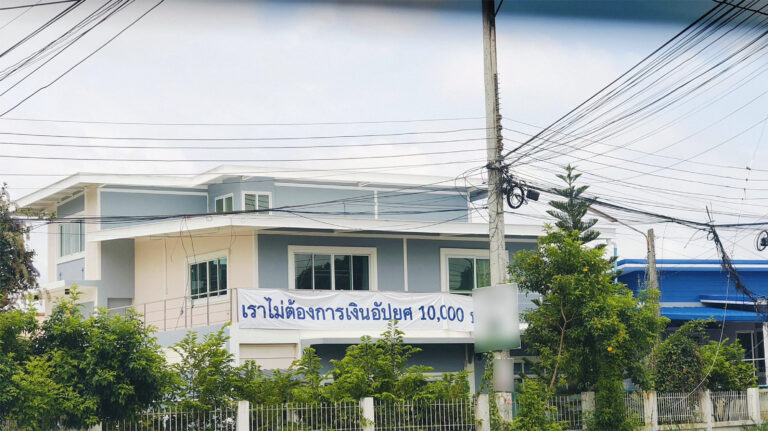 ภาพดังกล่าว ถูกระบุว่าเป็นบ้านหลังหนึ่งที่จังหวัดเชียงใหม่ มีป้ายข้อความว่า “เราไม่ต้องการเงินอัปยศ 10,000 บาท” ซึ่งเป็นช่วงเวลาที่ ครม.เพิ่งมีมติเคาะแจกเงินหนึ่งหมื่นบาทให้กับกลุ่มเปราะบาง ทั้งผู้ที่ถือบัตรสวัสดิการแห่งรัฐและผู้พิการ ราว 14.5 ล้านคน วงเงินงบประมาณ 1.45 แสนล้านบาท โดยจะแบ่งจ่ายเป็นสี่รอบ ตั้งแต่วันที่ 25 26 27 และ 30 กันยายน