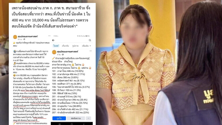 โดยผลสอบที่นำมาเปิดเผยแสดงถึงคะแนนที่ยอดเยี่ยมในสนามสอบบางแห่ง พร้อมข้อความระบุว่า “จากข่าวน้องคนหนึ่งสอบครูติด อันดับ 1 ผ่านไป 3 วัน ชื่อหาย ขออย่าเพิ่งด่า น้องคนที่มาเสียบแทน เพราะเอาชื่อน้องไปเสิร์ชในกูเกิล น้องคนนี้เก่งระดับหัวกะทิ เพราะน้องสอบผ่าน ภาคก. ภาคข.สนามอาชีวะ ซึ่งเป็นข้อสอบที่ยากกว่า สพม.ที่เป็นข่าวนี้ น้องติด 1 ใน 400 คนจาก 10,000 คน น้องไม่ธรรมดา รอตรวจอบให้แน่ชัด ถ้าน้องใช้เส้นสายจริงค่อยด่า พร้อมเรียกร้องให้มีการแชร์ข้อมูลที่น้องเขาสอบติดรอเรียกบรรจุ 1 สนาม และรอเรียกสัมภาษณ์ครูผู้ช่วยอาชีวะอีก 1 สนาม อย่าแชร์เฉพาะอันที่สอบไม่ติด เพราะสนามนี้ใครสอบผ่านคือหัวกะทิ
