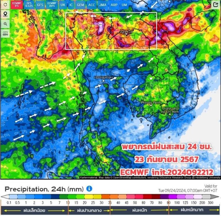 และตั้งแต่ 24-25 กันยายน ปริมาณฝนทั่วทุกภาคจะลดลง ยกเว้นตอนบนของภาคเหนือ และภาคอีสานที่ยังตกอยู่ต่อเนื่องอีก 1-2 วัน ก่อนที่ฝนจะกลับมาตกหนักอีกครั้งในช่วงต้นเดือนหน้าอีกครั้ง