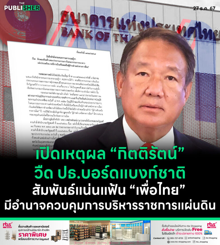 2 พฤติการณ์ของนายกิตติรัตน์ก่อนได้รับการเสนอชื่อเป็นประธานบอร์ดแบงก์ชาติ เคยเป็นรองประธานกรรมการในคกก.ด้านเศรษฐกิจของพรรคเพื่อไทย และภายหลังลาออกจากตำแหน่งดังกล่าวเมื่อวันที่ 30 ส.ค.66 ยังคงปฏิบัติภารกิจที่เกี่ยวข้องกับพรรคเพื่อไทย โดยการเยี่ยมชมภาคการเกษตรและโคนมในนามพรรคเพื่อไทยเมื่อวันที่ 1 ก.ย.66