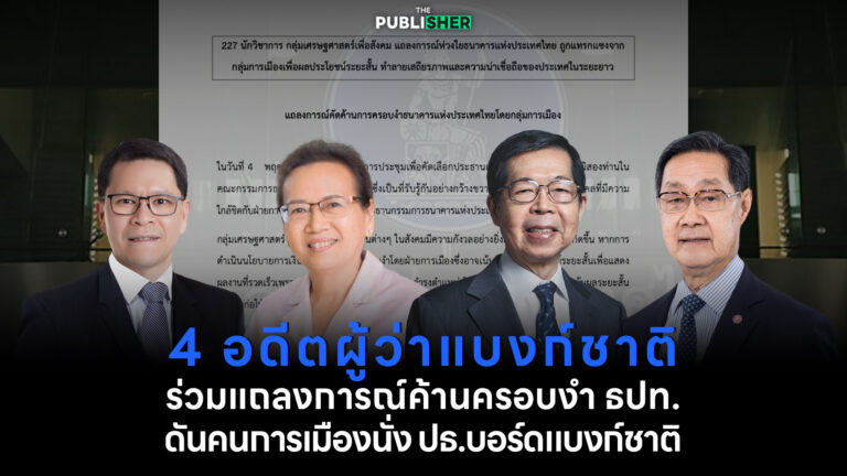 เป็นแถลงการณ์ที่ออกในนาม 227 นักวิชาการ กลุ่มเศรษฐศาสตร์เพื่อสังคม แสดงความห่วงใยธนาคารแห่งประเทศไทย ถูกแทรกแซงจากกลุ่มการเมืองเพื่อผลประโยชน์ระยะสั้น ทำลายเสถียรภาพและความน่าเชื่อถือของประเทศในระยะยาว มีเนื้อหาแสดงความห่วงใยต่อการคัดเลือกประธานและกรรมการผู้ทรงคุณวุฒิในคณะกรรมการธนาคารแห่งประเทศไทย ที่จะมีขึ้นในวันสที่ ภาพ 4 พ.ย.นี้ ซึ่งมีข่าวว่าฝ่ายการเมืองเสนอคนใกล้ชิดไปดำรงตำแหน่งประธานบอร์ดแบงก์ชาติ กลุ่มเศรษฐศาสตร์เพื่อสังคมกังวลถึงผลกระทบที่จะเกิดขึ้น หากการดำเนินนโยบาย